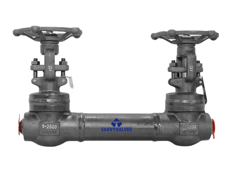 Configuration: Two high-pressure forged steel gate valves welded into a single integrated body assembly